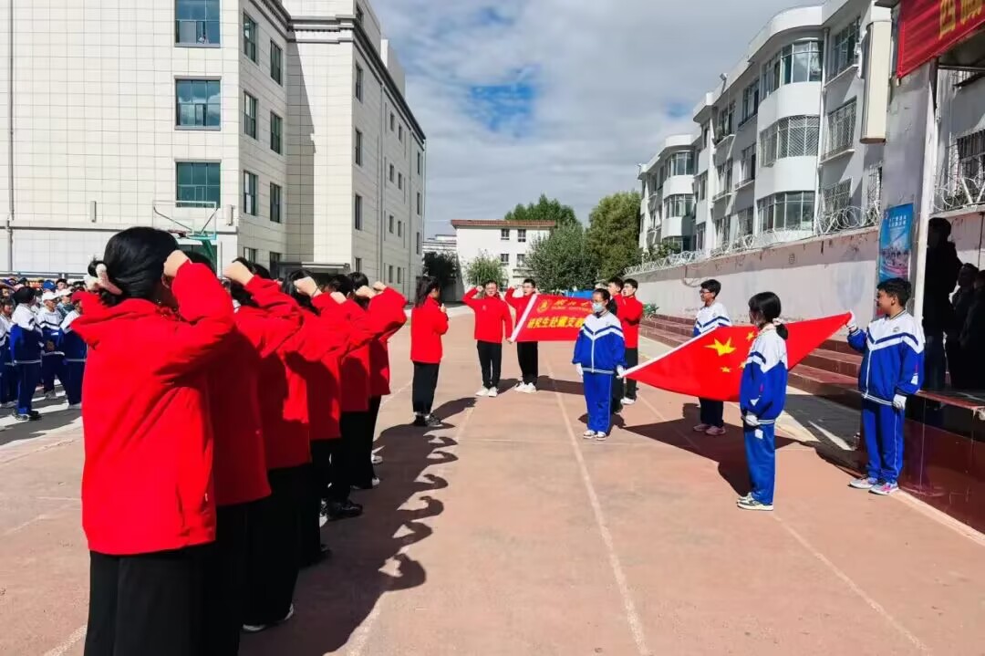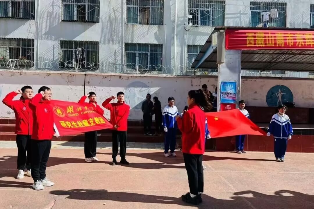 9月18日,PA视讯集团官网第五批研究生赴藏支教团受到山南市东辉中学师生的热烈欢迎,支教团全体成员参加东辉中学升旗仪式,并面对国旗和支教团旗庄严宣誓。